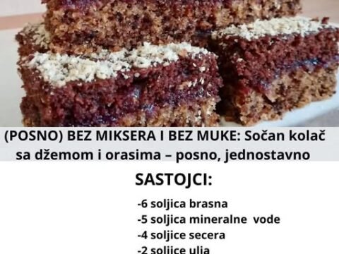 BEZ MIKSERA I BEZ MUKE: Sočan kolač sa džemom i orasima – posno, jednostavno i ukusno! Ovaj kolač je pravi spas kada želite nešto brzo,…