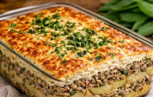 U posebnoj činiji umutiti jaja sa mlekom i malo soli, pa preliti preko cele musake. Po želji možeš dodati i malo pavlake za bogatiji ukus i lepšu koricu. Stavi da se peče u rerni zagrejanoj na 180°C oko 45–50 minuta, dok krompir ne omekša, a površina dobije zlatno-smeđu boju.