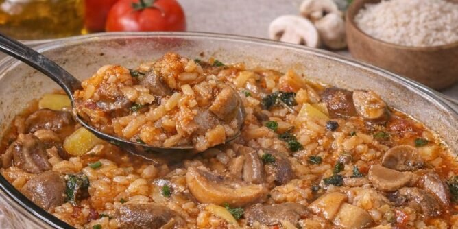 Ovaj posni đuveč sa šampinjonima je savršen izbor kada želite nešto ukusno, zasitno i jeftino, a da se lako priprema. Kombinacija pirinča, povrća i šampinjona daje bogat i pun ukus, dok se sve lepo sjedini tokom pečenja i dobije onu pravu domaću aromu. Idealan je za post, ali i kao lagan ručak za celu porodicu.