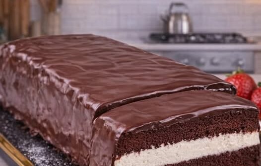 Tortu ostavite u frižideru najmanje 2–3 sata da se stegne, a zatim secite na parčad. Dobijate savršeno mekan biskvit, lagani mlečni fil i bogatu čokoladnu glazuru – ukus koji zaista podseća na omiljeni Kinder Delice, ali u domaćoj, još boljoj verziji.