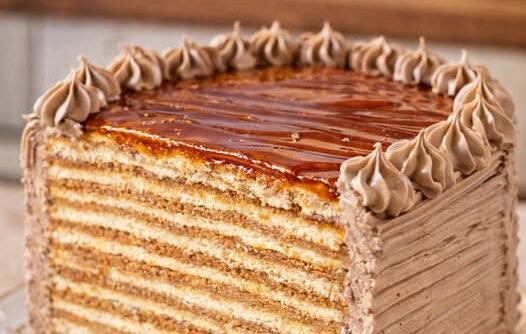 Ostavite tortu u frižideru nekoliko sati da se stegne i poveže. Kada se seče, dobijaju se savršeni slojevi, a svaki zalogaj je spoj hrskavog karamela i kremaste čokoladne strukture koja se bukvalno topi u ustima.