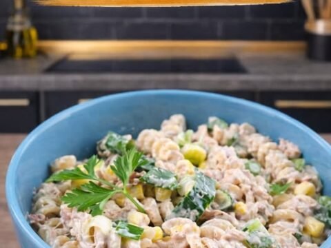 U jednoj većoj posudi pripremite osnovu salate. Potrebno je 250 g testenine (fusili ili makarone), koju skuvajte u slanoj vodi prema uputstvu sa pakovanja, zatim…