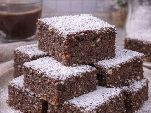 U jednoj većoj posudi pomešajte sve suve sastojke: 2 šolje (250 ml) brašna, 1 šolju šećera, 1 šolju mlevenih oraha, 2 kašike kakaa, 1 kesicu…