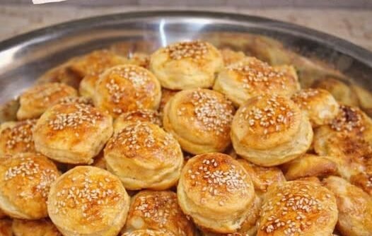Za ove mekane i mirisne pogačice potrebni su sledeći sastojci: 250 g margarina (ili putera), 300 g svežeg sira (sitni ili kremasti), oko 400 g glatkog brašna, 1 ravna kašičica soli, 1 jaje za premazivanje i susam za posipanje.