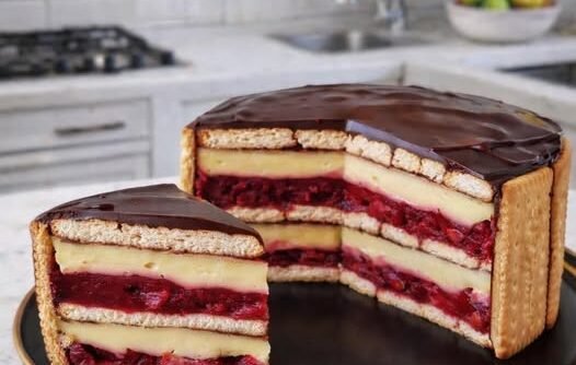 Ova torta je savršen spoj kiselkastih malina, kremastog fila i čokoladnog završetka. Brza je, jednostavna i idealna za dane posta – a ukusom osvaja već na prvi zalogaj!
