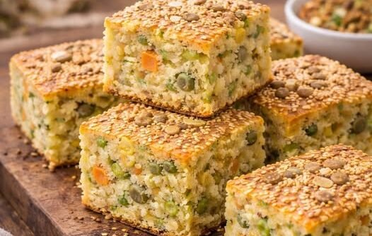 Pripremljena smjesa se izlije u podmazan pleh ili obložen papirom za pečenje, pa se odozgo može posuti susamom ili sjemenkama suncokreta za dodatnu hrskavost. Peče se u prethodno zagrijanoj rerni na 180°C oko 30–40 minuta, dok ne dobije zlatnu koricu.