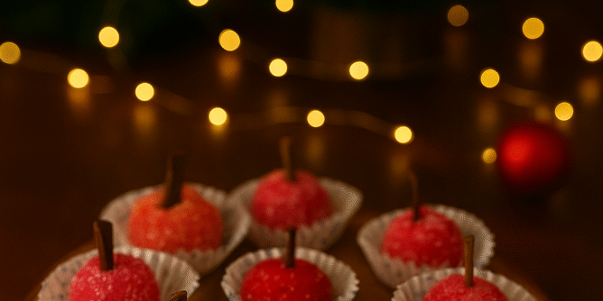 Deo kuglica ostaviti u prirodnoj boji, a deo uvaljati u crveni/roze šećer ili obojiti u prahu.