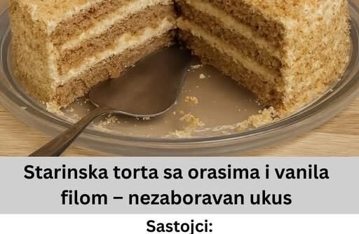Ako volite domaće kolače koji podsjećaju na bakinu kuhinju i miris djetinjstva, ova starinska torta sa orasima je pravi izbor. Sočne kore, kremasti vanila fil i mirisna narandžina kora čine je neodoljivom i savršenom za svaku svečanu priliku.
