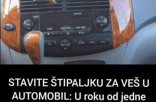 Sve što vam treba je drvena štipaljka za veš i eterično ulje po želji. Štipaljku natopite sa nekoliko kapi ulja pa je pričvrstite na otvor za ventilaciju, gdje se i inače stavljaju kupovni tekući mirisi za automobil.
