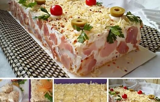 POTREBNI SASTOJCISU SLEDEĆI: 1 kriška prepečenog kruha, 3 šalice kiselog vrhnja, 300 g majoneze, 150 g šunke, 1,5 žlica pirea od rajčice, 8 kiselih krastavaca, 3 tvrdo kuhana jaja, 100 g sira.